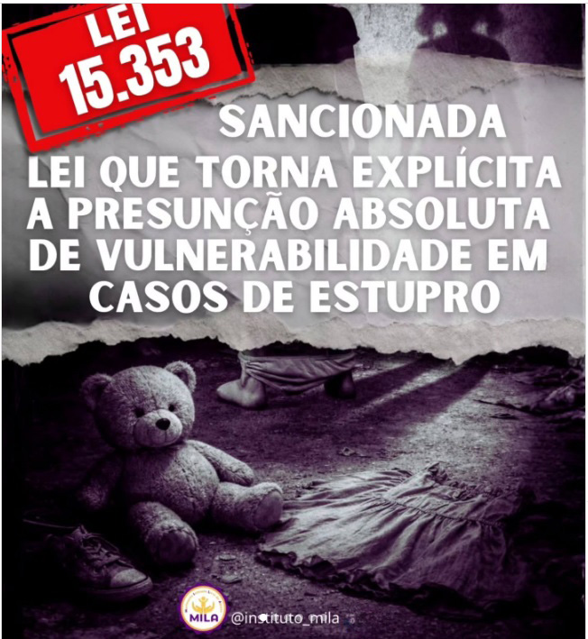 Sancionada pelo presidente Luiz Inácio Lula da Silva, a lei que altera o Código Penal Brasileiro para reforçar a proteção de vítimas em casos de estupro de vulnerável. A norma torna explícita a presunção absoluta de vulnerabilidade nesses crimes. Também fica estabelecido que as penas previstas se aplicam independentemente do consentimento da vítima, de sua experiência sexual, do fato de ela ter mantido relações anteriormente ao crime ou da ocorrência de gravidez decorrente da violência. Na prática, a lei reforça que a condição de vulnerabilidade não pode ser relativizada.