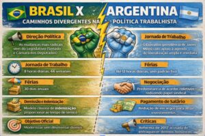 Esse contraste evidencia que, embora ambos os países discutam flexibilização, o Brasil ainda mantém um núcleo de garantias sociais, enquanto a Argentina caminha para um modelo de mercado mais radical, em que o trabalhador terá de negociar diretamente sua sobrevivência em condições menos reguladas.