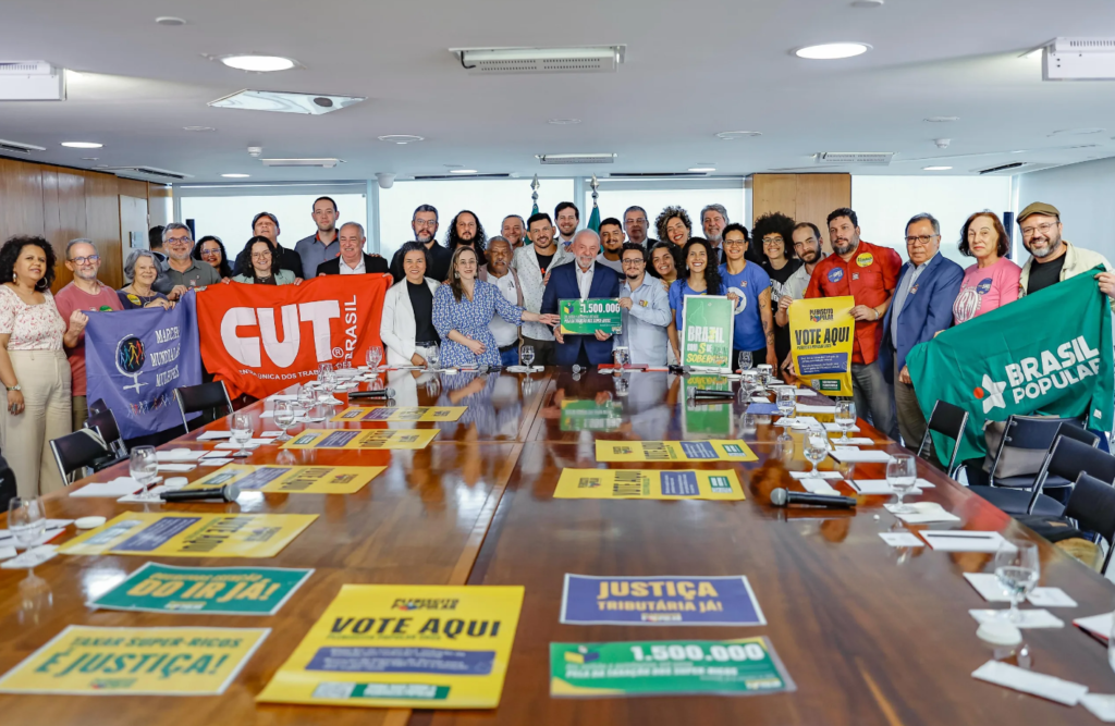 Nesta quarta-feira (1º), representantes de movimentos populares e centrais sindicais entregaram ao presidente Lula (PT) o resultado parcial do Plebiscito Popular 2025. Desde o dia 1º de julho, quando a votação foi aberta, a consulta pública recebeu 1,5 milhões de votos pelo fim da escala 6×1 e ampliação da isenção do isenção do Imposto de Renda (IR), pauta em discussão nesta quarta no Congresso Nacional.