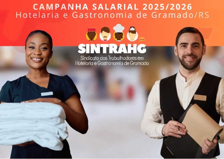 A data-base da categoria é 1º de novembro, e a Convenção Coletiva 2025/2026 reafirma o compromisso do SINTRAHG com a melhoria das condições de trabalho, justiça salarial e valorização de quem faz a hotelaria e gastronomia de Gramado serem referência nacional.